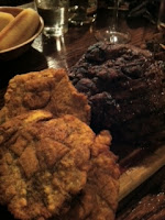 We settled on one of their larger entres , Tabla de Carne . This assorted meat plank featuring Chuletilla de Cordero , Chuleta de Cerdo , Carne de Res , Morcillas, Pollo , Chorizo Criollo and Papas y Tostones is a Spanish carnivores delight that was one of the best meat dishes we have had in a long while.