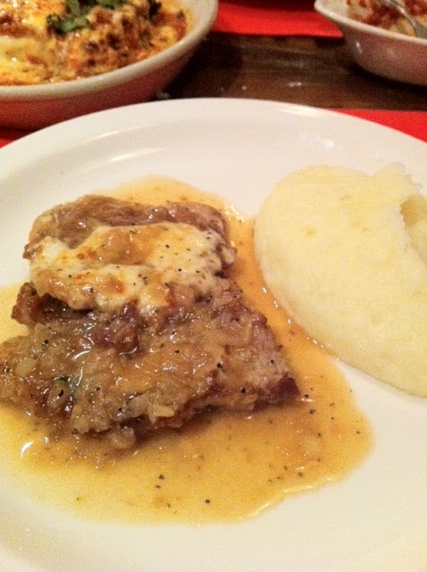 When we visit any Italian Restaurant for the first time we usually order a veal dish. In our opinion veal is not that easy to prepare properly. The veal in this dish was perfectly pounded into thin pieces and seasoned nicely with sage , prosciutto and creamy mozzarella . The plated dish with the mashed potatoes was rustic and earthy, just like we would expect from a cantina in the country,