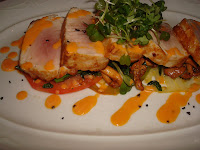 broccoli rabe with polenta and a pork tenderloin with heirloom tomatoes. The Opa was flown in fresh from Hawaii and had a dense texture with a mild flavor that was accented with the acidity from the brococoli rabe. The pork tenderloin was cooked perfectly. Each bite was a taste that we will long remember.