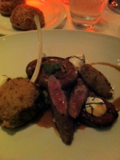 Roasted Loin , Merquez, Sweet and Sour Eggplant ,