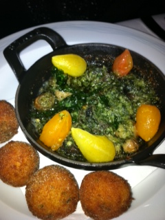 DB Bistro is located just off the breathtaking lobby with its marble floors , chandlers and sleek modern décor. From the time we walked into Daniel Boulud’s newest creation we could feel an urban vibe starting with the hip lounge across from the hostess table. Entering the main dining area Yabu Pushellberg’s interior jumped out at us with its comfortable , modern and elegant soft earth tones. After being seated we were greeted by the very impressive and immaculately attired Sommelier John Mayfield who guided us to a nice Albarino to get our experience started.