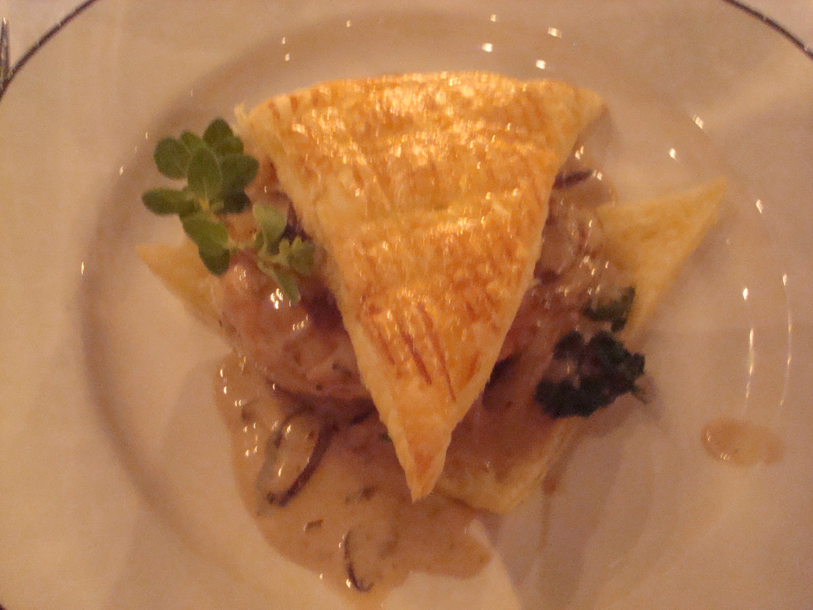 Roasted Cal Poly Organic Free Range Chicken , Kendall farms creme fraiche and shitake mushroom stroganoff in puff pastry.