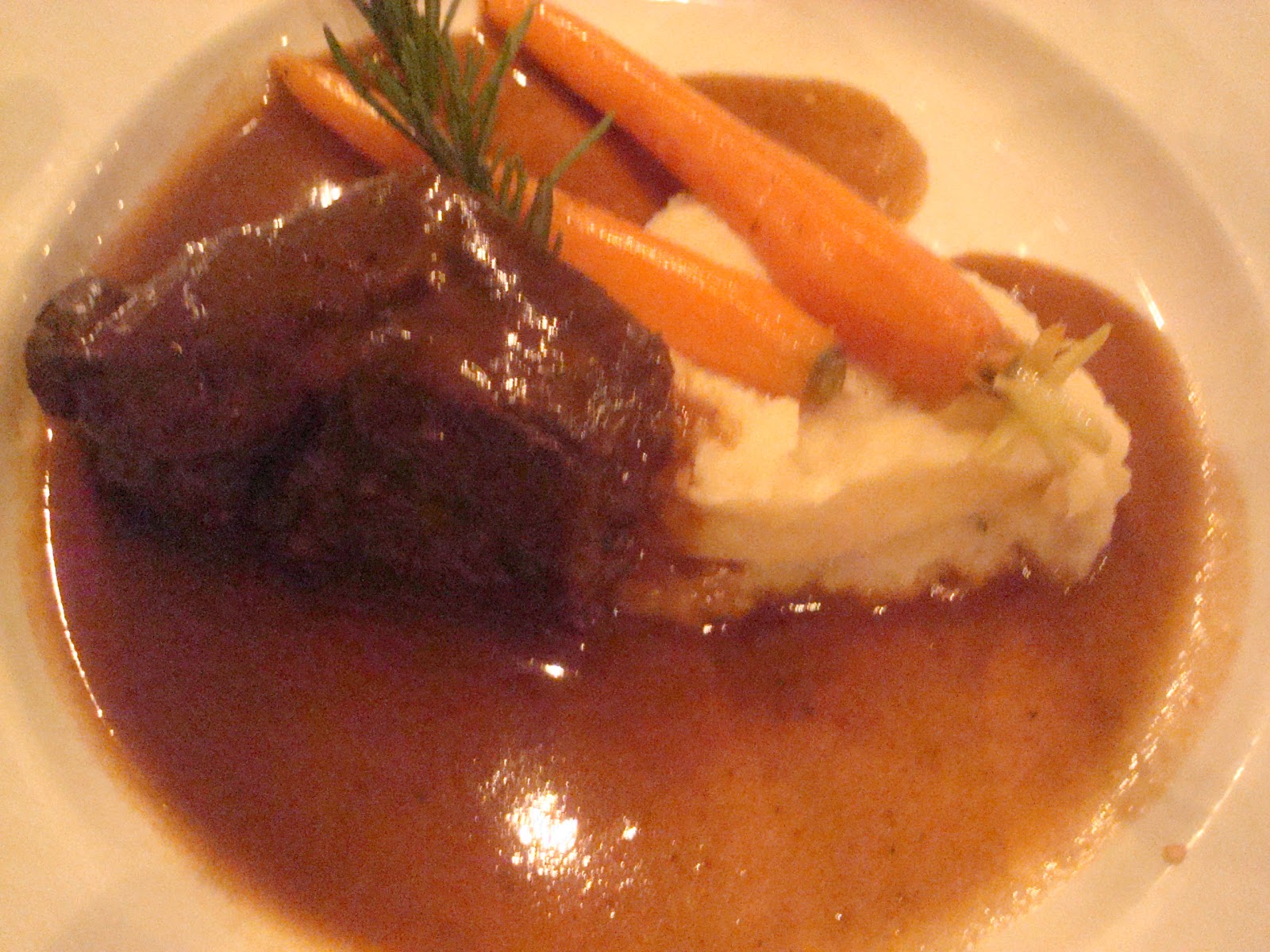 Santa Margarita Ranch Grass fed beef daube , Babe Farm celeriac root puree , baby carrots and Oyster Ridge brasing jus.