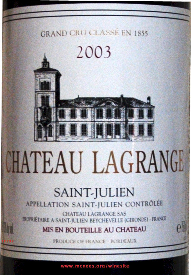 2005 Chateau Lagrange : Purple color in the glass . The nose is